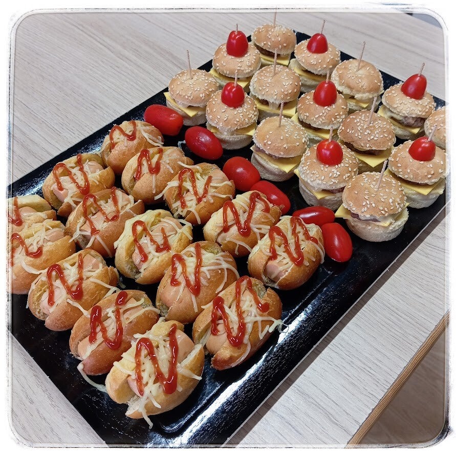 15 mini burgers, 15 mini hot dog